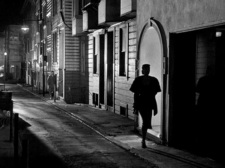 This movie is cynical about fame, Hollywood, and human relationships, but tantalizes us with the possibility that new love can redeem it all. The suspense emerges less from the murder mystery than from the warring internal emotions of the characters. Director Nicholas Ray knew life’s dark places and how to get actors to go there. His marriage to the volatile Grahame ended in the most sordid way imaginable while they were making this movie, and the anguish and anger on the set comes out in the electric performances of the cast. The film is also remarkable for its opening five minutes, which are a clinic in how a great director and actor can establish a character with ruthless economy (incidentally, the bar in the opening scene was modeled after Romanoff’s, Bogart’s favorite watering hole).
